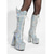 Dames disco-platformlaarzen in holografische zilveren stijl uit de jaren 70 - robuuste veterlaarzen tot halverwege de kuit met ultrahoge hakken voor retro dansfeesten en evenementen met een