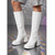 Witte kunstleren knielaarzen voor dames met blokhak – elegante, stijlvolle schoenen met vierkante neus voor de winter, herfst en formele gelegenheden