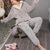 dames pyjama sets pure kleur mode basis comfort thuis dagelijks bed breien ademend v draad lange mouw trui broek knoop elastische taille herfst winter thuis outfits
