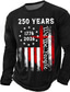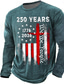 4 juli 2026 250e herdenking Mannen 3D Print Crew Neck Lange Mouwen T-Shirt Casual Dagelijks