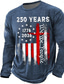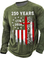 4 juli 2026 250ste Memorial Day Mannen Patriottische Vintage Versleten Patriot Graphic 3D Print Amerikaanse Vlag Nationale Vlag Veteran Crew Neck Langarm T-Shirt
