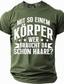 Heren Grappige Duitse Slogan T-Shirt 'Met Een Lichaam Als Dat Wie Heeft Haar Nodig?' Korte Mouwen Grafische Tee