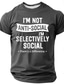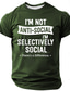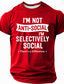 Mannen T-Shirt Grappige Graphic Korte Mouwen T-shirt Ik Ben Niet Anti-Sociaal Selectief Sociaal Quote Lifestyle Humor