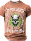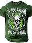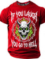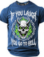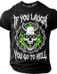 Heren T-shirt met de tekst "If you laugh you go to hell", gothic, heavy metal, donkere humor, edgy streetwear, graphic, regular fit, korte mouwen, ronde hals, casual, designer kleding, S, M, L, X