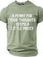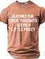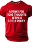 Heren T-shirt met de tekst "A penny for your thoughts" lijkt een beetje prijzig. Grappige, sarcastische slogan, typografische print, normale pasvorm, casual, dagelijks gebruik, humor, cadeau,