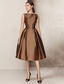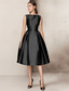 A-lijn Over de knie Galajurken Vintage Jaren '50 Mouwloos Vierkante hals Bruiloft gast valmistuminen Satijn met Sjerp / Lint Strik(ken) Pure Kleur