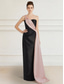Schede / Kolom Avond Tot de grond Bruiloft gast jurk Formele jurk Avondjurk Galajurken Elegant Mouwloos Eén-schouder Schoolfeest Formeel Satijn Stretchstof met Kleurenblok