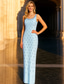 Zeemeermin Trumpet Vloerlange Prom Jurken Elegante Feestkleding Mouwloos Eén Schouder Prom Avondfeest Rugloos met Pailletten Split