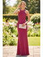 Strak kolom Over de knie Gala jurk Bruiloft gast jurk Avondjurk Galajurken Elegant Mouwloos Strakke ronde hals Schoolfeest Formeel Stretch crêpe Blote Rug met Strik(ken) Effen kleur
