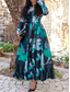 Dames Maxi-jurk Zonnejurk A lijn jurk Geplooide jurk Vakantie Casual Boho Uitgaan Ruim Passend Bloemig Grafisch 3/4 mouw V-hals Groen Donkerblauw