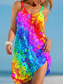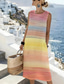 dames maxi-jurk mouwloos pastelkleurig regenboogkleurig ronde hals zwierig bohemian-stijl casual zomer strandkleding normaal tot plus size