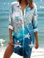 Dames Mini Jurk Shirt Jurk Graphic Elegante Vintage Tropische Lange Mouw Shirt Kraag Lange Knopen Print Blauwe Zomer Lente
