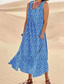 Dames Maxi-jurk A lijn jurk Slipdress Vakantie Casual Boho Buiten Uitgaan Normale pasvorm Bloemig Mouwloos V-hals blauw Abrikoos Beige Zomer