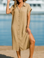 Dames Halflange jurk Shirtjurk Klassiek Modern Buiten Vakantie Feestdagen Normale pasvorm Effen Korte mouw Overhemdkraag blauw Blozend Roze Paars Khaki Zomer