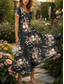 Dames Lange jurk maxi-jurk Casual jurk Swingjurk Jurk met print Modieus Streetwear Volwassen Buiten Vakantie Dagelijks Normale pasvorm Bloemig Lange mouw Gespleten nek Rood Paars Groen Donkerblauw