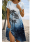Dames Mini-jurk Zonnejurk T shirt jurk A lijn jurk Vakantie Feest Casual Buiten Strand Feest Normale pasvorm Bloemig Grafisch Korte mouw Ronde hals wit Blauw Lichtgroen Lichtgrijs Zomer Lente