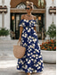 Dames Maxi-jurk Zonnejurk A lijn jurk Vakantie Casual Boho Vlinder Strand Normale pasvorm Bloemig Grafisch Tribal Korte mouw V-hals Ronde hals Blauw Wit Donkerblauw Licht Blauw-Wit Zomer Lente