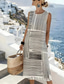 Dames Midi Jurk Linnenachtig Zomerjurk Shift Jurk A-Lijn Jurk Vakantie Casual Boho Strand Uitgaan Losse Pasvorm Grafisch Geometrisch Mouwloos Ronde Hals Blauw Wit Geel Roze Zomer Lente