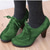 Groene fluwelen Mary Jane-hakken met sleehak en strik, geïnspireerd op de jaren 50 - retro kerstfeestplatformschoenen voor feestelijke gelegenheden en avondoutfits