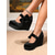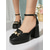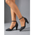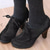 Zwarte suède plateau pumps voor dames uit de jaren 50 met enkelbandje en kristallen bedel – stijlvolle schoenen met hoge hak voor avondfeesten en formele gelegenheden