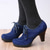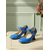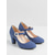 Vintage blauwe Mary Jane-hakken met T-bandjes voor dames – suède pumps met middelhoge hak en gespsluiting voor retro, formeel en dagelijks gebruik