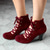 Rode enkellaarsjes met veter en hoge hak voor dames - retro chique Victoriaanse laarzen van imitatieleer en kant voor herfstoutfits, streetwear en feestdagen