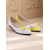 Vintage gele Mary Jane pumps uit de jaren 1920 voor dames – pumps met uitgesneden details en een gebogen hak, klassieke lakleren look, perfect voor Gatsby-feesten, swingdans en speciale gelegenheden.