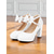 Dames loafers met dikke hak en plateauzool uit de jaren 50 – crèmekleurige imitatieleren pumps met ronde neus, parelkwast en enkelbandje voor bruiloften, feesten en formele evenementen