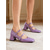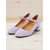 Damespumps in lavendelkleur met T-bandje en bloemenapplicatie – elegante vintage stijl uit de jaren 50, comfortabele blokhakken voor tuinbruiloften en retro gelegenheden