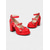 Vintage rode lakleren loafers voor dames uit de jaren 50 met dikke hakken, wit paneel en gouden metalen gesp – retro mod-stijl hakken voor op kantoor, feestjes en dagelijks gebruik