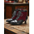 Dames victoriaanse rode en zwarte veter enkellaarsjes met suède en leren contrasten - vintage-geïnspireerde platte hak schoenen voor cosplay en formele evenementen