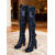 zwarte veterschoenen voor dames tot aan de knie – vintage laarzen van imitatiesuède met dikke hak voor de herfst-wintermode