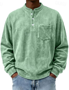 Voor heren T-shirt Corduroyshirt Henley-shirt Lange mouw Henley Lente Herfst Effen Kleur Vintage Streetwear Stijlvol Zak Raglan mouwen Dagelijks Buiten Vakantie Zwart Blauw Groen Top T-shirt voor