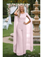 Jumpsuits Tot de grond Moeder van de bruid jurk Mouwloos Strakke ronde hals Elegant Formeel Bruiloft gast Chiffon met Cape