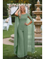 Broek Tot de grond Moeder van de bruid jurk Lange mouw V-hals Elegant Bruiloft gast Formele avonden met Ruches Effen kleur