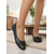 Zwarte ballerina's met blokhak en strik voor dames van lakleer - elegante schoenen met ronde neus voor op het werk, op kantoor en formele gelegenheden