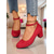 Rode Mary Jane pumps met blokhak voor dames - ronde suède schoenen met enkelbandje, vintage stijl voor op kantoor, feestjes en dagelijks gebruik