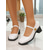 Dames tweekleurige lakleren pumps met blokhak – spitse neus voor op kantoor, zakelijk casual en dagelijks gebruik