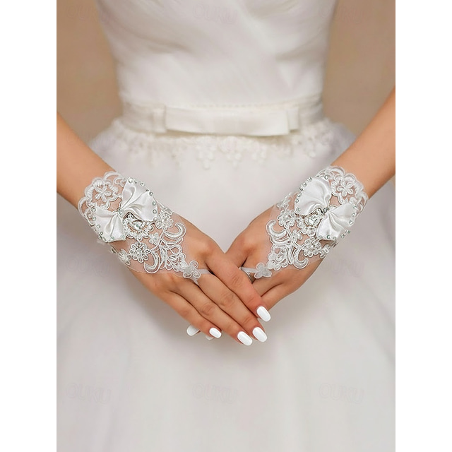 Damespolshandschoenen van kant, gemaakt van polyester, een elegant bruidsaccessoire, geschikt voor bruiloften, feesten en speciale gelegenheden.