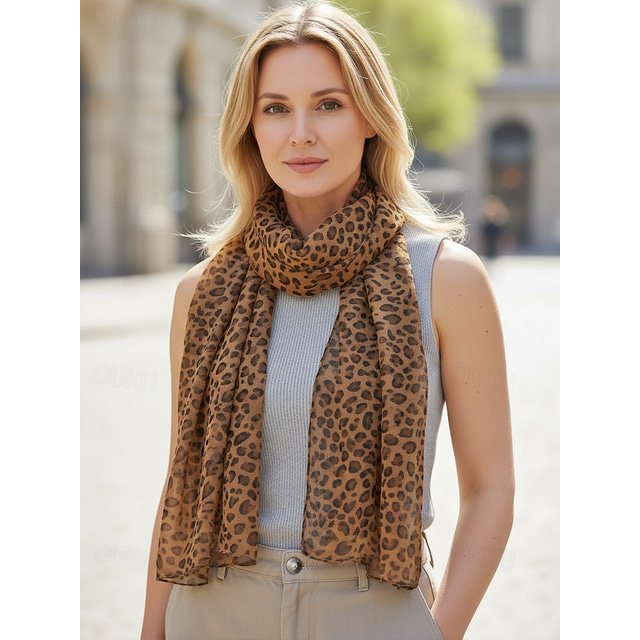 Damessjaal in bohemian stijl, lichtgewicht chiffon, met luipaardprint, verkrijgbaar in diverse kleuren, ideaal voor dagelijks gebruik, vakantie en reizen.