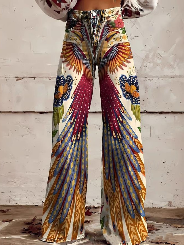 Dames Wijd Been Chino's Baggy Broek Mode Streetwear Bohemian Volledige Lengte Hoog Taille Bloemendessin Abstract Elastic Waistband Bedrukking Comfortable Zacht Comfortabel Micro-rek Buiten Vakantie