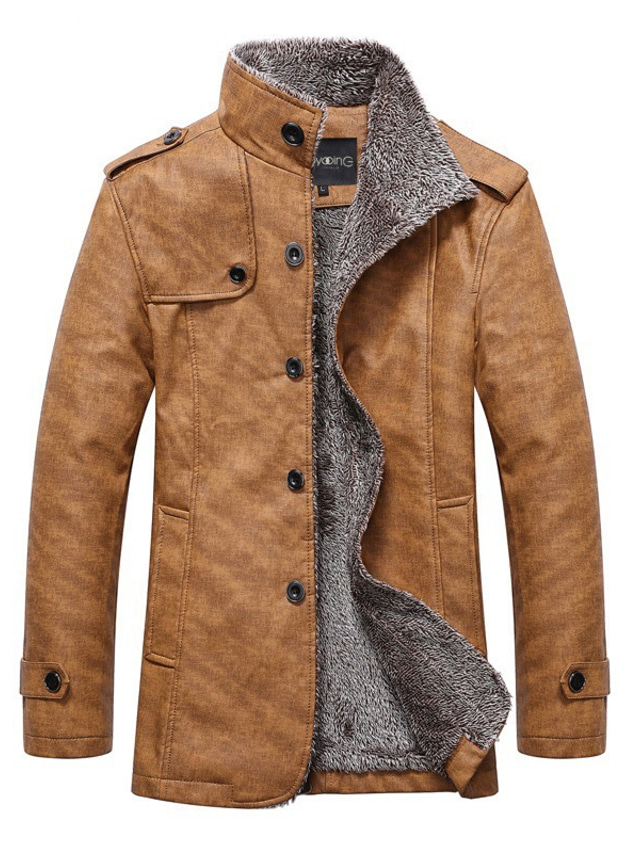 Voor heren Leren jacks Peacoat Vintage leren jas Bruin suède jasje Motorfietsen Alledaagse kleding Thermisch Warm Herfst Winter Effen Kleur Chique en modern Lang Imitatiebont Imitatieleer donkergrijs