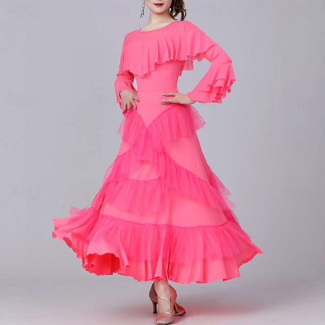 Latijnse dans Rokken Pure Kleur Gesplitst Tule Dames Prestatie Opleiding Lange mouw Hoog Polyester