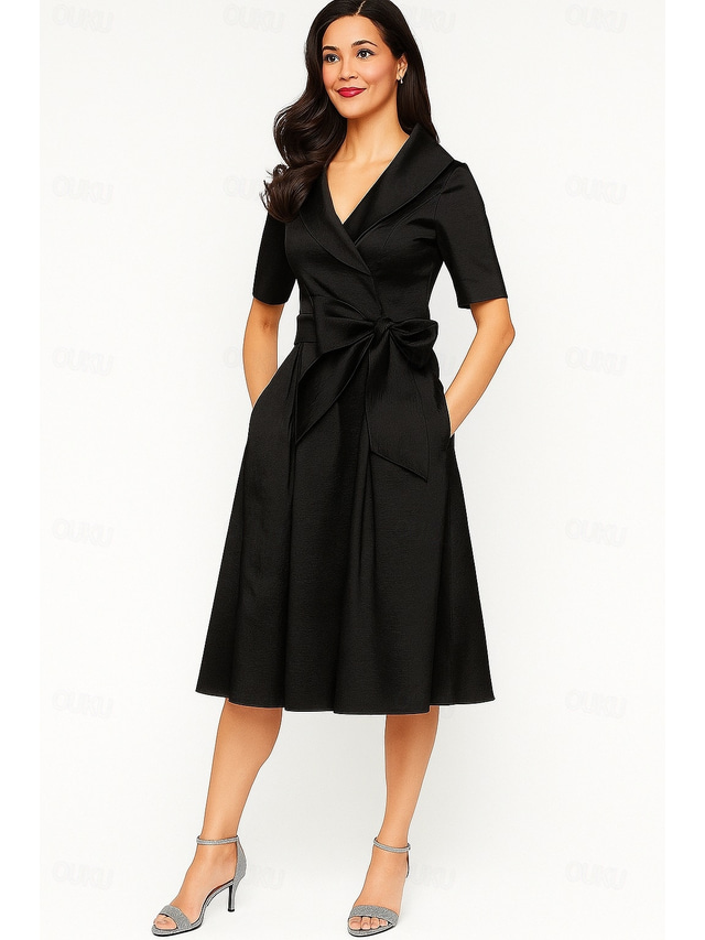 Dames Smokingjurk A-lijn Bruiloft Formeel Bruiloft gast Satijn Elegant Vintage Korte mouw Over de knie Sjaalrevers