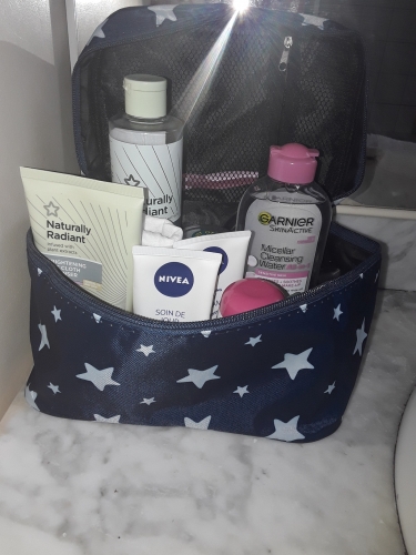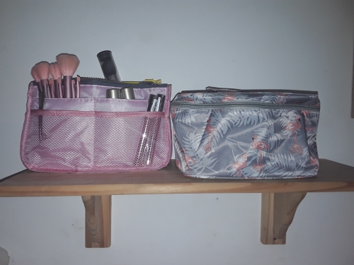 What a cut little tote bag to put makeup in or might use it for neccessities like toothpaste and tooth brush deodorant and perfume etc..It will be the perfect size to fit im my overnight bag.too. What a cut little tote bag to put makeup in or might use it for neccessities like toothpaste and tooth brush deodorant and perfume etc..It will be the perfect size to fit im my overnight bag.too.
