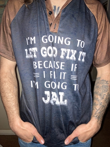 Good quality shirt and good printing. True to size as well. Good quality shirt and good printing. True to size as well.