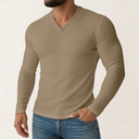Heren slim fit geribbeld V-hals overhemd met lange mouwen, getailleerd casual gebreid spiershirt, top, lente, herfst, winter, effen, oksel, streep, modeontwerper, basic, breien, vakantie, straat, casual, zwart, wit, paars, t-shirt