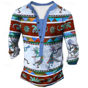 Voor heren Totem Overhemd Overhemd met knopen Lange mouw Modieus Streetwear Ontwerper Buiten Casual Dagelijks Zomer Herfst V-hals Afdrukken Wit blauw Khaki |