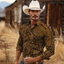 Voor heren Paisley Westers overhemd Cowboyshirt Lange mouw Vintage Western stijl Tribal Buiten Vakantie Paardenrace Lente zomer Strijkijzer Afdrukken Button-omlaag Donkerrood Zwart Geel Marineblauw |
