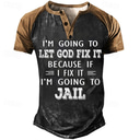 Mannen Graphic T-shirt korte mouw Henley Grappige 'Laat God het oplossen of ik ga naar de gevangenis' quote levensstijl humor |